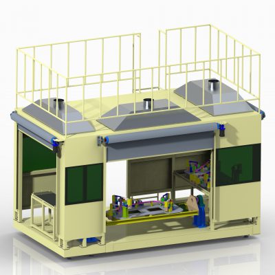 ออกแบบและผลิตบูทสำหรับงานเชื่อม ติดตั้งโรบอท จิ๊กฟิ๊กเจอร์ เครื่องเชื่อม และอุปกรณ์อื่นๆ ไว้ภายในบูท สามารถความคุมการเชื่อมจากภายนอกได้