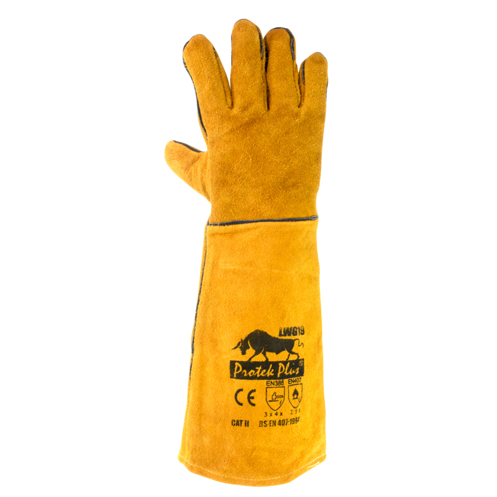 LWG19 | ถุงมือหนังงานเชื่อมไฟฟ้า ตัดเลเซอร์ สีน้ำตาลเหลือง Protek Plus