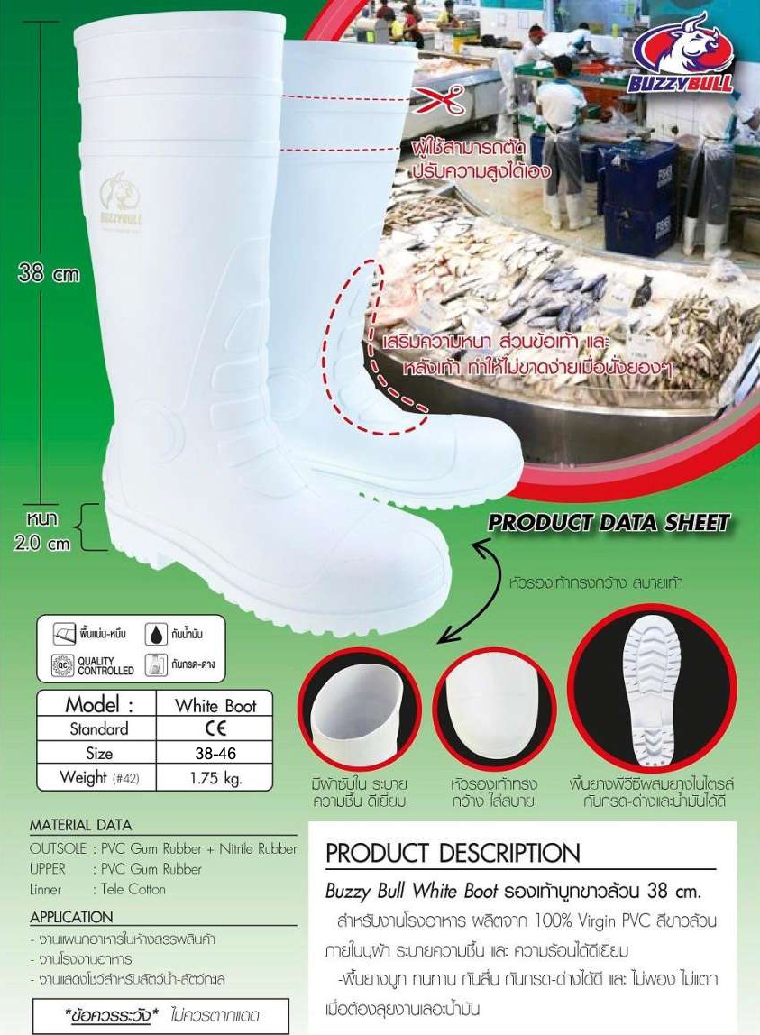 BUZZY BULL WHITE BOOT 38 cm สีขาว รองเท้าบูทงานโรงงานอาหาร