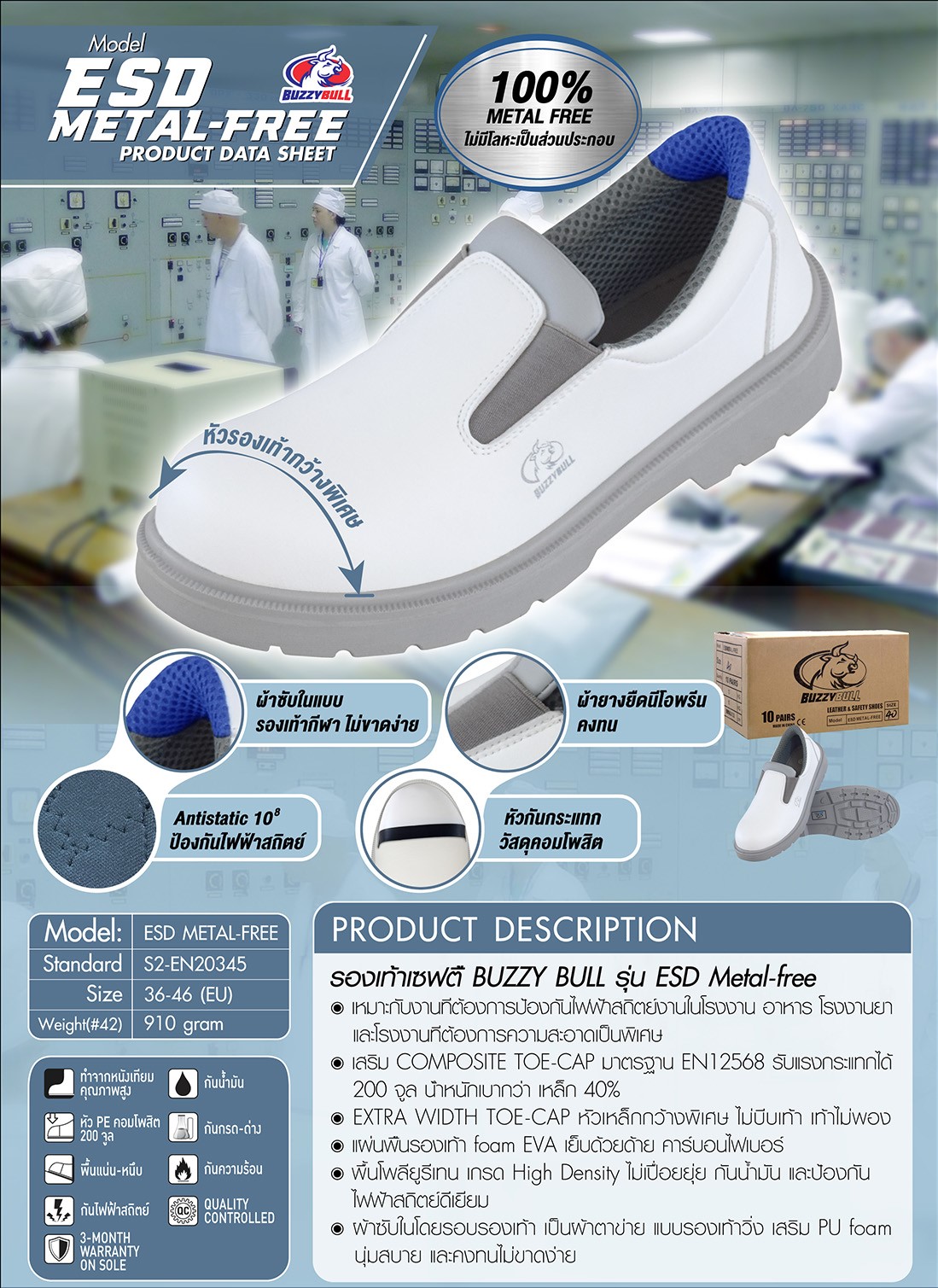 BUZZY BULL WHITE ESD METAL FREE รองเท้าเซฟตี้สีขาว