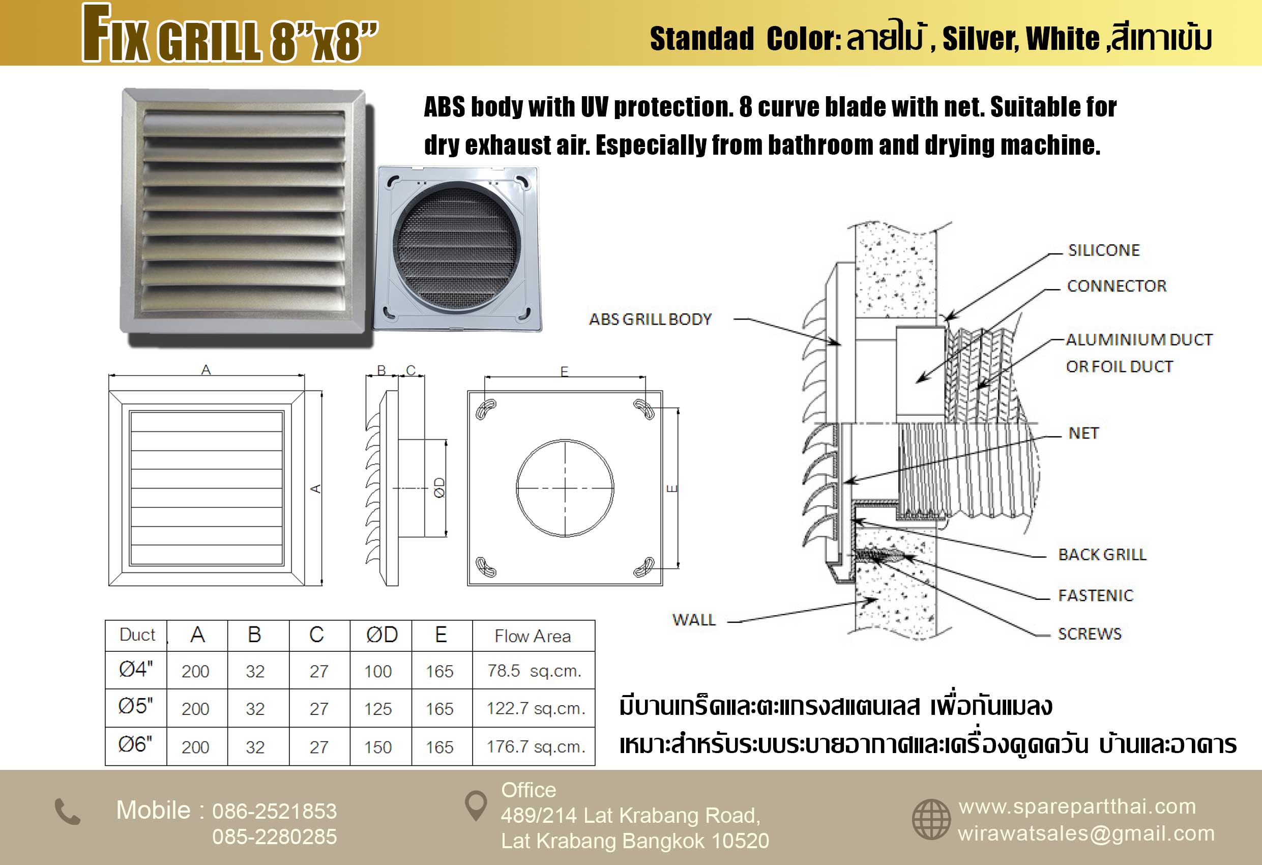 Exhaust Grill ผลิตจากวัสดุ ABS ชนิดไม่ลามไฟ พร้อม UV Protection ทนแดด ทนอุณหภูมิได้ถึง 120 องศาเซลเซียส สวยงามด้วย Design ใหม่ มีบานเกร็ดและตะแกรงกันแมลงสแตนเลส เข้ากับทุกสไตล์บ้านและอาคาร พร้อมต่อท่อ 5″