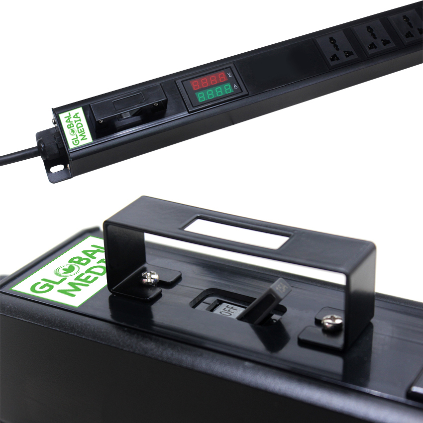 Global Media PDU รางปลั๊กไฟ 12 เต้ารับ มีเบรกเกอร์ Volt Amp Meter Display