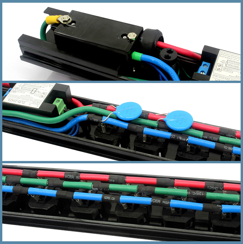 - รองรับระบบสายดินป้องกันไฟดูดกรณีเกิดไฟรั่วจากอุปกรณ์ ด้วยการต่อสายดินจากขา Gruond ของ Outlet มายังตัวถังของรางปลั๊ก