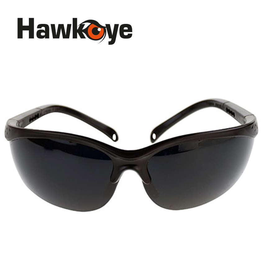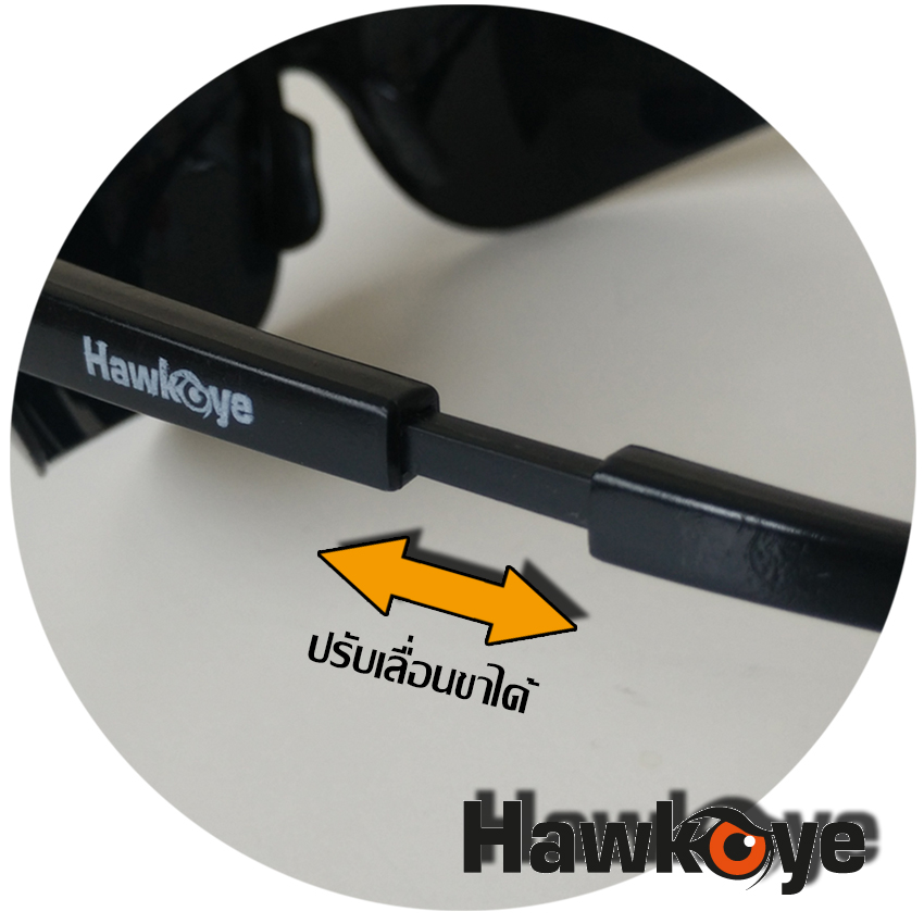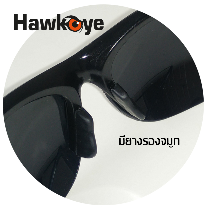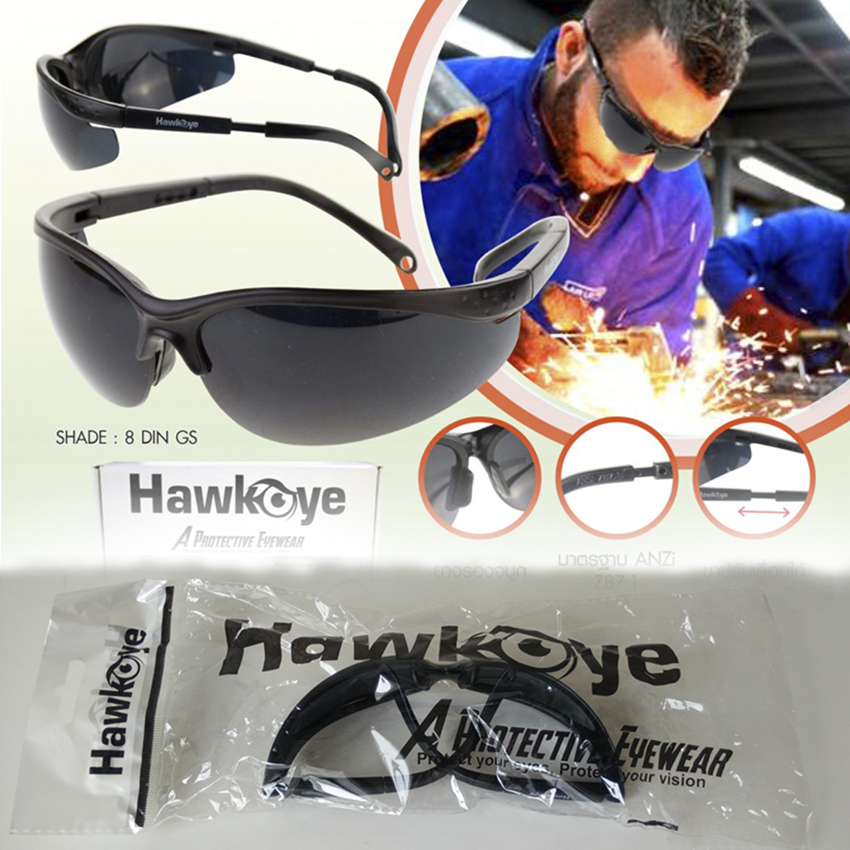 HAWKEYE D-3007 แว่นตานิรภัย เลนส์ดำเฉด 8 / มียางรองจมูก / ปรับเลื่อนขาได้