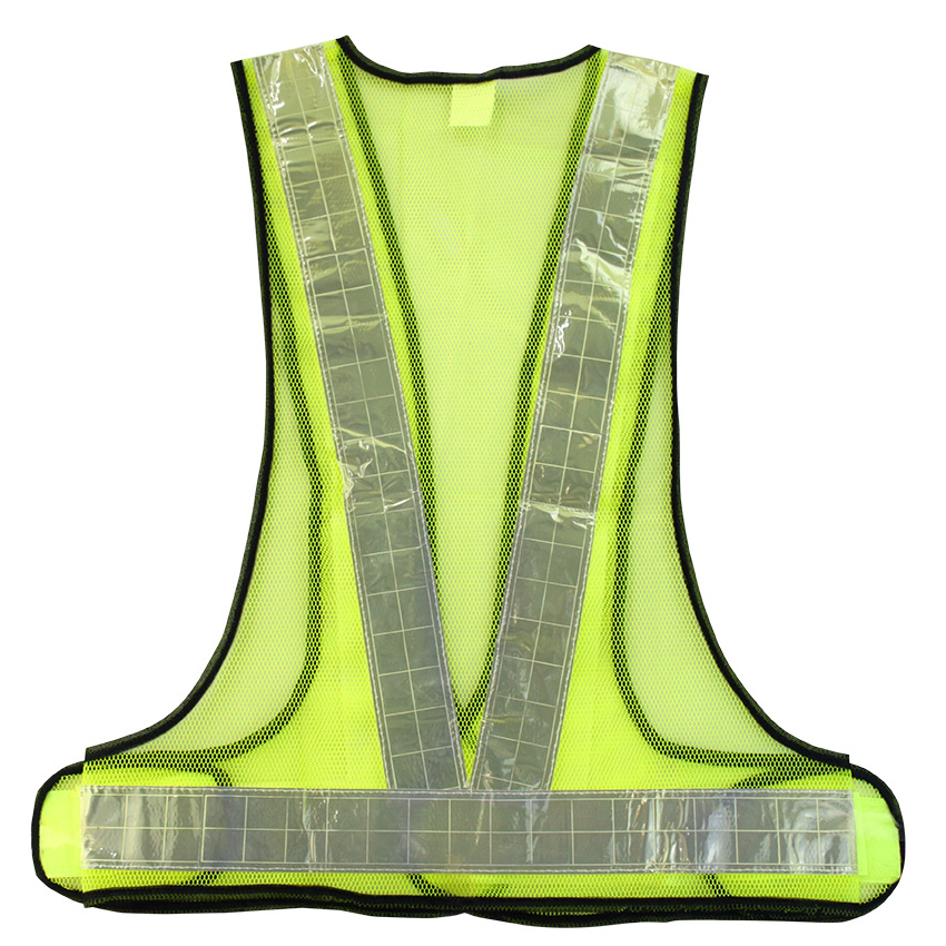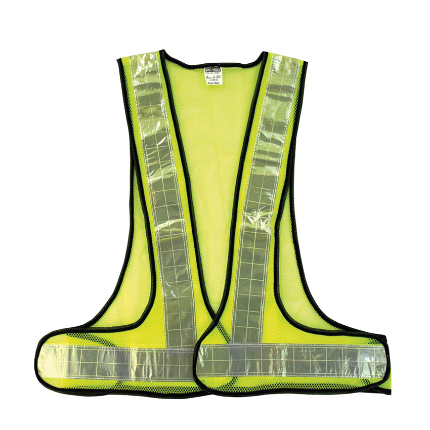 HV-1003 เสื้อจราจร สะท้อนแสง แบบสาย ผ้าเขียว แทบขาว